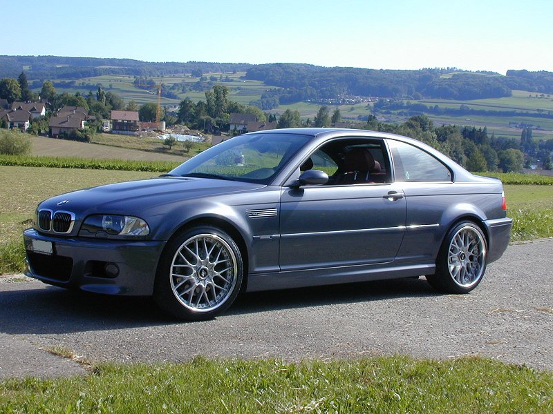 I had a wonderful chance of test drive a BMW M3 SMG II and would like to try to express my impressions behind the wheel of this magnificent automobile. For those that are not familiar with this system here some techs notes: The amazing new 6-speed transmission designated SMG II system in the M3 allows you to change gears just like the drivers in Formula 1. BMW's six-speed SMG gearbox is an achievement resulting from the experience of there involvement in Formula 1. Using hydraulic and electronic devices to operate the clutch and select gears, it is essentially the same shift system currently used by the BMW Williams F1 car. In addition to the F1 system, SMG II allows you to do a lot more. You can change the speed of the shift depending on conditions your faced with. By pressing the button in the central console, you can change the gears slowly (S1 mode) for smooth and relaxed driving up to S6 mode where hydraulics switch through the gears in only 0.08 seconds! For those that are really lazy you have the option of setting the gears to full automatic mode (A1-A5). Before I start I'd like to thank Andreas for giving me the opportunity on spending a great afternoon in Switzerland while driving in his beautiful M3. As you can see in the pictures below the weather was very hot with blue skies all day. Unfortunately the experience made me not realize that the sun was burning my arms so I got an extremely bad sun burn :-( Click on the picture for a larger image. |