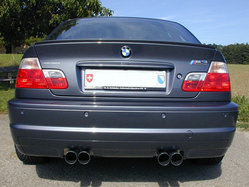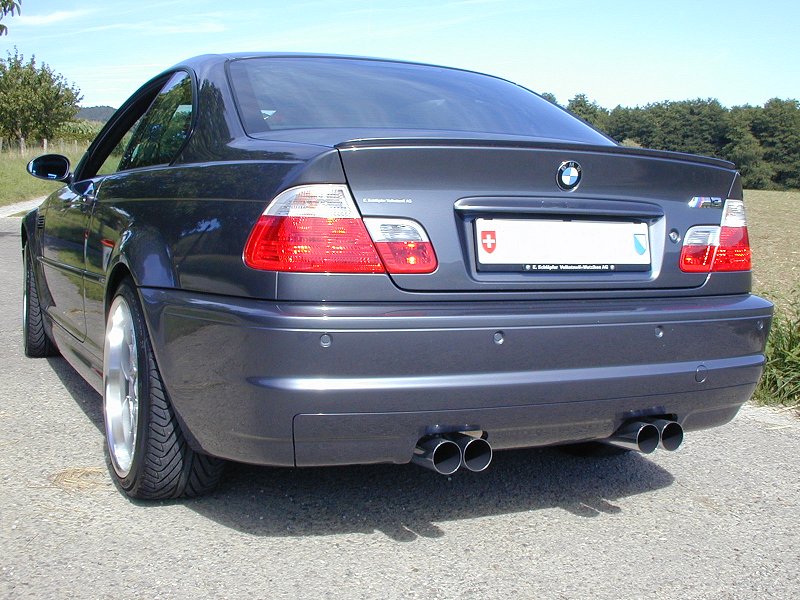 OK, so I get in the car and we drive from the parking lot on to the road. The first thing that immediately caught me of guard was the exhaust note. WOW, what a monster of a sound! For me the Eisenmann (Daehler) exhaust makes one thunderous sound (if I where still 20 years old that is ;-) but since I'm an old goat I just think it's a bit too loud for my taste and I felt a little embarrassed when we where driving thru those beautiful little Swiss towns as pedestrians where staring at me eeemm... us ;-) Here is a sound bit with the Eisenmann exhaust. Please do yourself a favor and turn up the volume ;-) As a comparison you can find a sound bit of the original M3 exhaust here. |