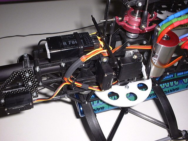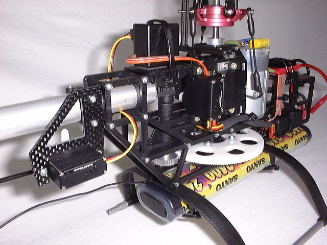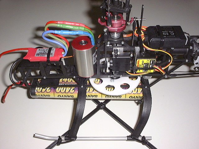Um mich auf meinem neuen Motor vorzubereiten, habe ich den Empfänger nach hinten verbannt und der Kreisel durch Alu-Winkel an der Seite montiert.