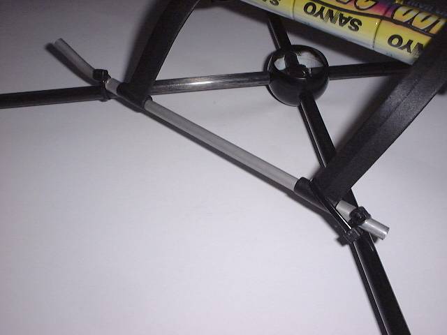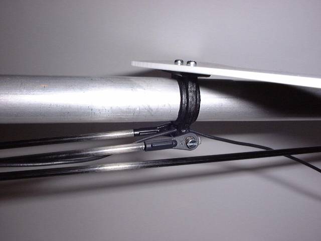 Um die Antenne zu führen, habe ich einfach ein weises Kunststoffrohr genommen. Mittels Kabelbinder wurde das Rohr am Gestell und am Heckrohr befestigt. |