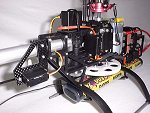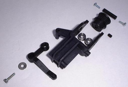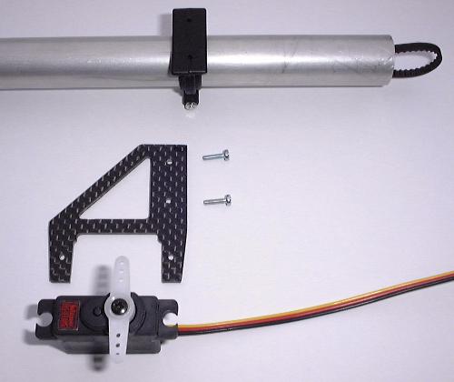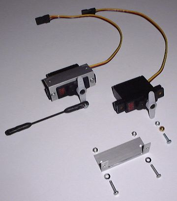 | Zusammenstellung der Servos und selbst gebauter Aluservohalter (40mm lang). |