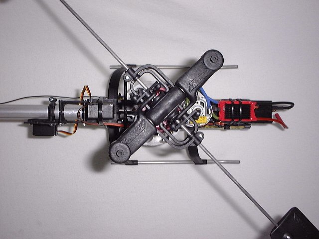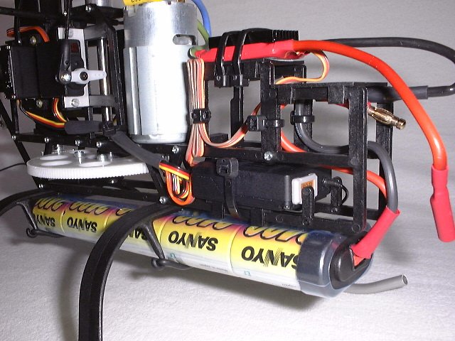 In dieser Konstellation bekommt der Heli zuviel Luftpolzter und schwimmt wie ein Hovercraft kreuz und quer herum. Es ist unmöglich die Maschine in einem ruhigen Schwebezustand zu bringen. Nach ca. 4 Akkuladungen habe ich die Sache aufgegeben.