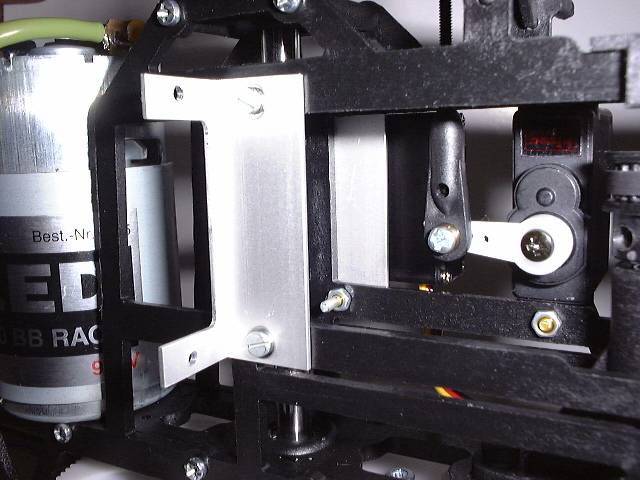 Beim OBI habe ich mir ein Aluwinkel 15x15x1 gekauft um damit meine Servohalter zu bauen. War etwas fieselarbeit, aber ich denke das Ergebnis ist ok. Die Winkel passen sehr schön am Rahmen und scheinen auch stabil genug zu sein.